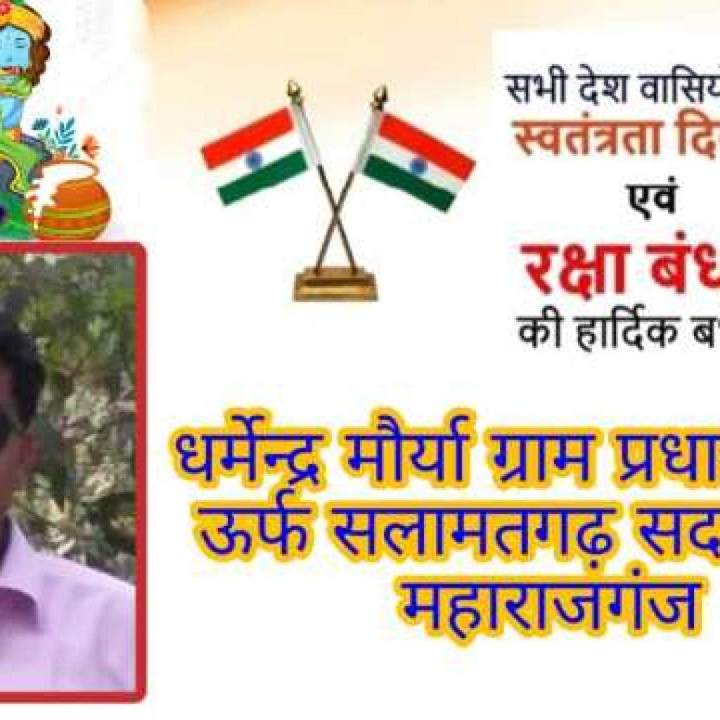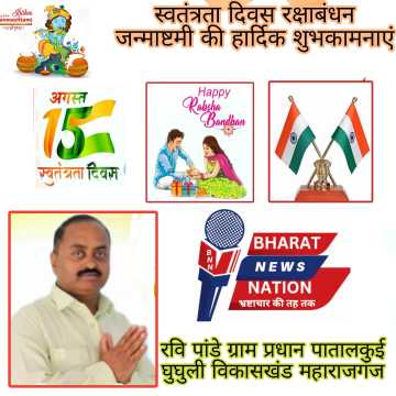 स्वतंत्रता दिवस व रक्षाबंधन और जन्माष्टमी पर रवि पांडेय ग्राम प्रधान पातालकुई ब्लाक घुघुली महाराजगंज के तरफ से अपने क्षेत्र वासियों और देशवासियों को हार्दिक शुभकामनाएं दी हैं